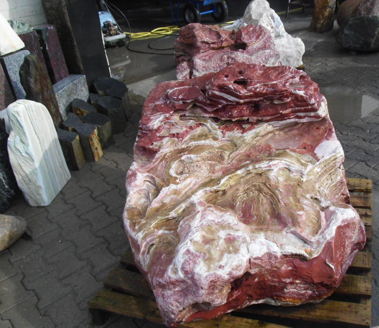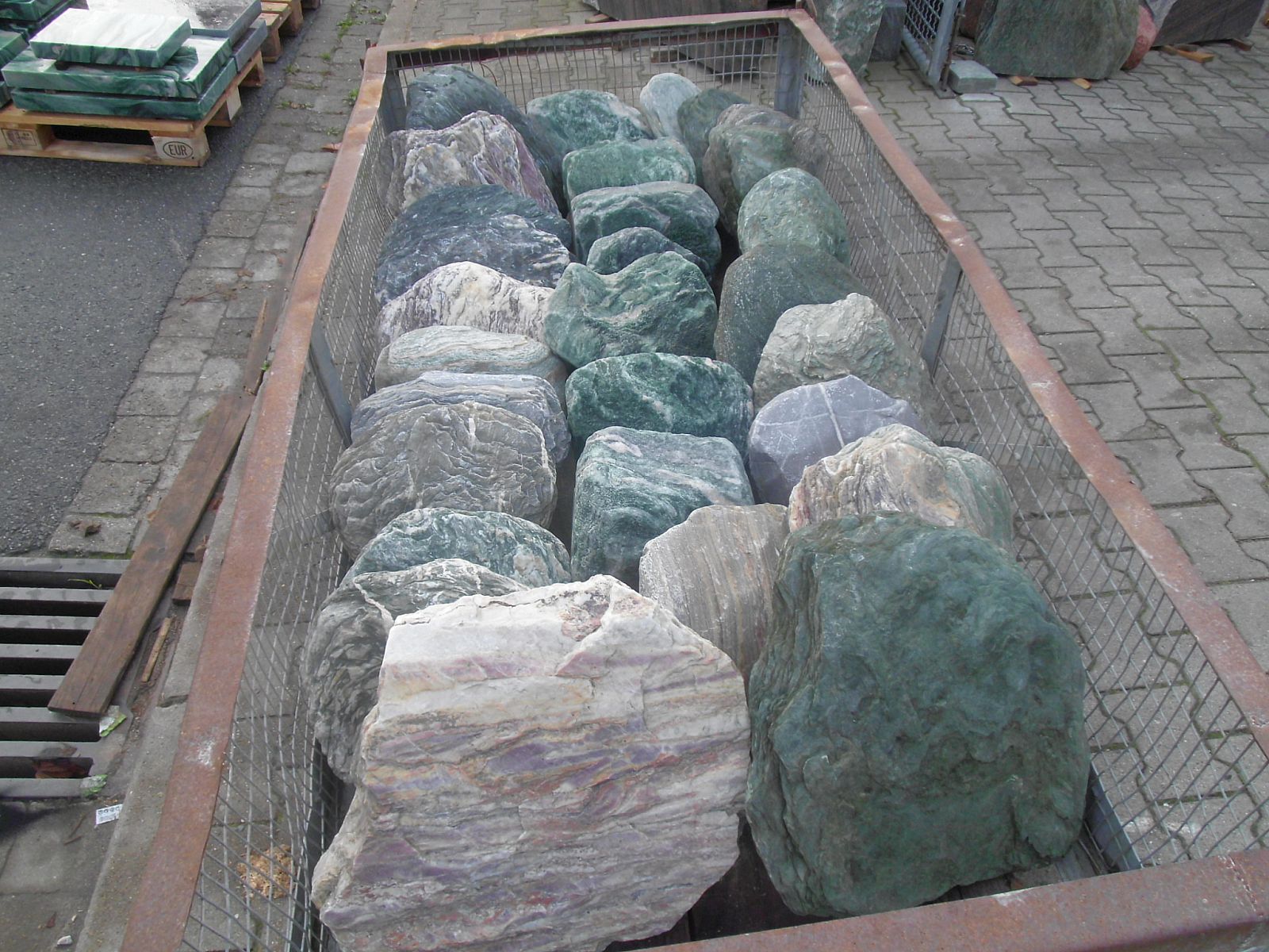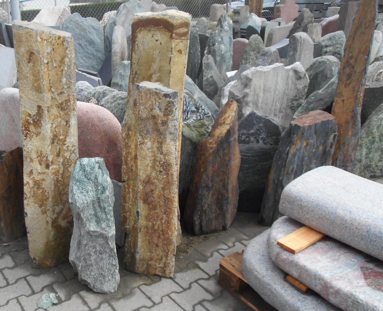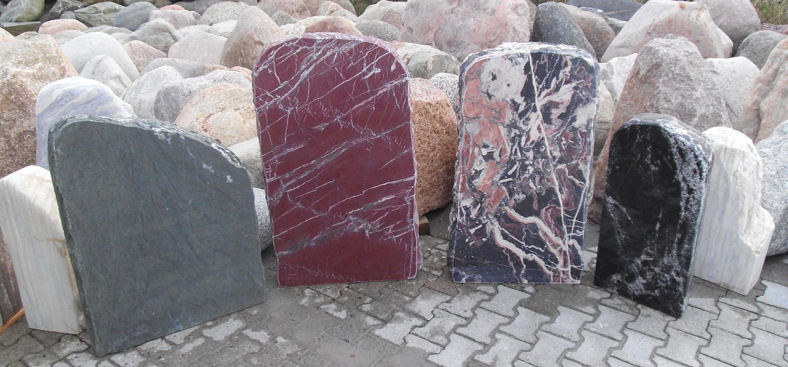 Sehr geehrter Besucher / Kunde, hier sehen Sie unser aktuelles Portfolio. Auf unserem Gelände lagern viele verschiedene Typen von Natursteinen. Wir sind bemüht dieses Online so oft es geht zu aktualisieren, eine Garantie für die Verfügbarkeit gibt es aber leider nicht. Preise und Verfügbarkeit können Sie per Telefon oder Mail erfragen. Bitte merken Sie sich die Bild-Nr. oder ggf. den Namen des Bildes etc. Wir freuen uns auf Ihre Kontaktaufnahme. Wir liefern Ihre Natursteine Deutschlandweit bis zu Ihnen vor die Haustür, Garten oder wo auch immer Sie sich Ihren Naturstein wünschen.